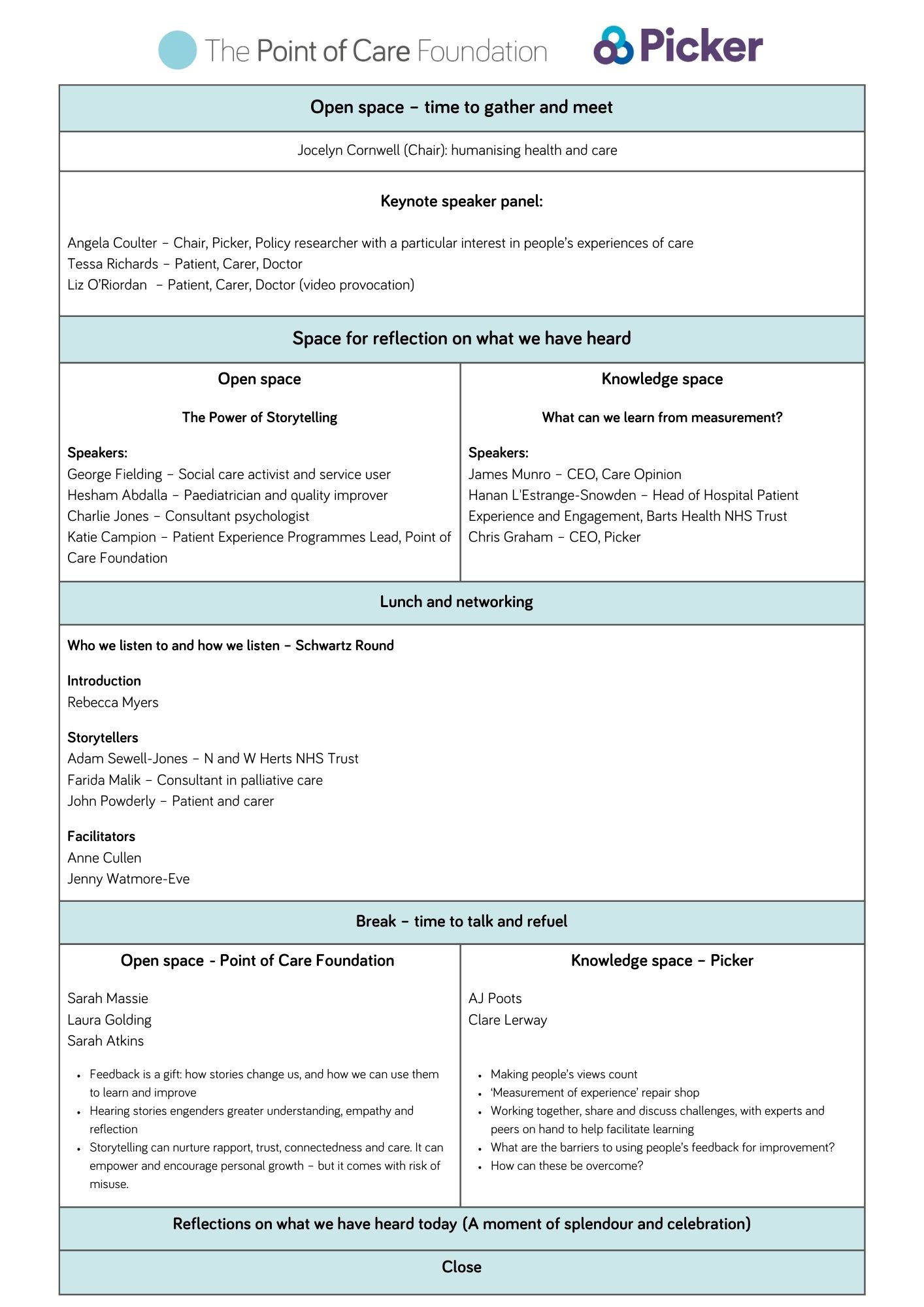 This event forms part of the Point of Care Foundation’s 10th anniversary celebrations.