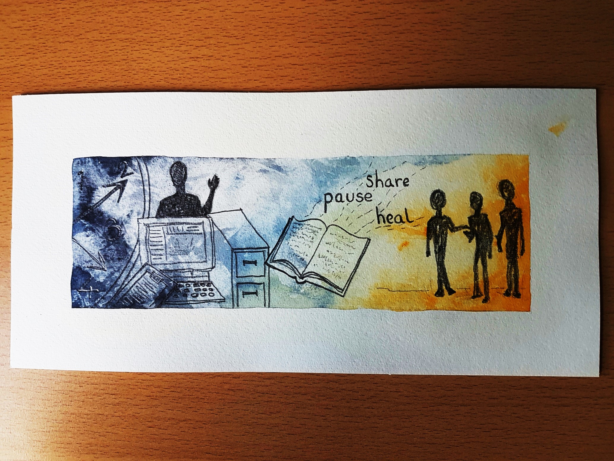 Yusuf’s photo beautifully captures some of the core components of Schwartz Rounds in just one photo. It also emphasises how labels and hierarchies are not the focus in Rounds since they are an opportunity for sharing human experiences. The photo also stresses the need to stop and take time out in order to reflect.